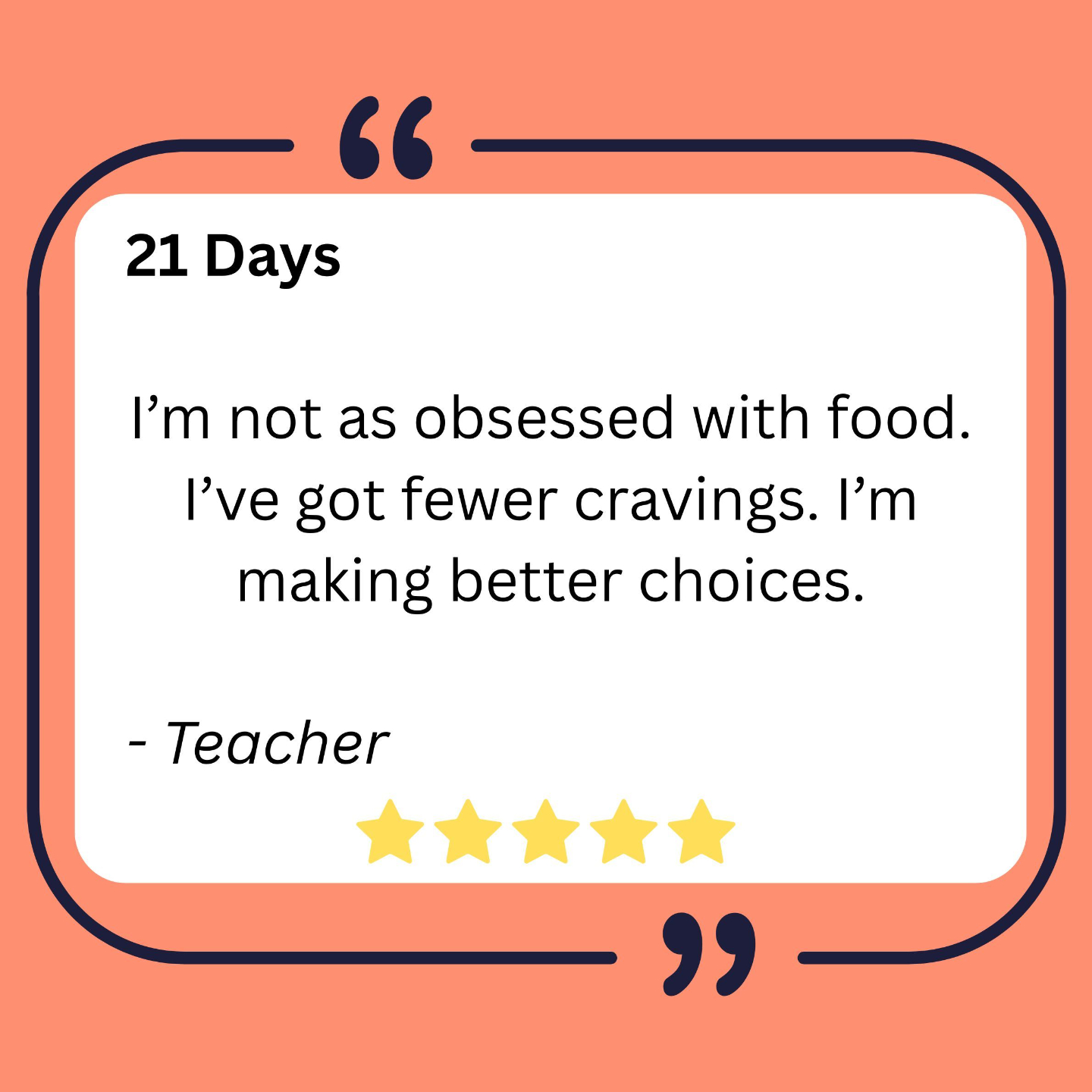 In just 10 days, you’ll shut off the emotional eating patterns driving your cravings, so food stops controlling your life, healthier choices are automatic, and weight loss finally becomes sustainable.